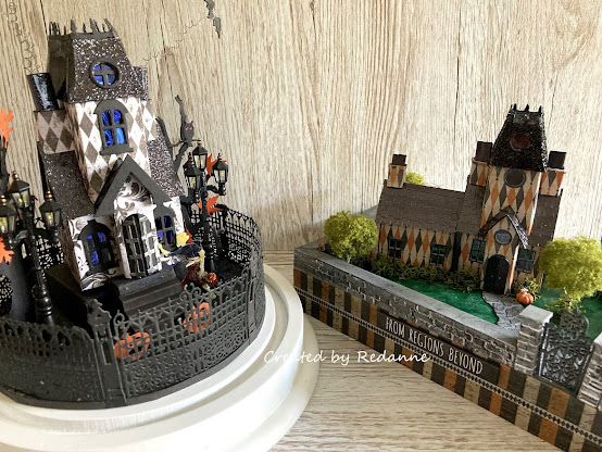 It was great fun building the kit, I used Stamperia Allegro paints and Stamperia Rice paper to decorate the house and pub. To create the illusion of leaded windows I used a permanent black pen on acetate.